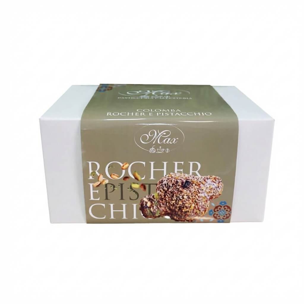 Questo prodotto sarà spedito dal 18 Marzo 2026.Delizia la tua tavola con la nostra Colomba artigianale Rocher: soffice e profumata, viene servita con crema artigianale al pistacchio in sac à poche separata, pronta per essere farcita a piacere, e completata da una croccante granella di pistacchi.